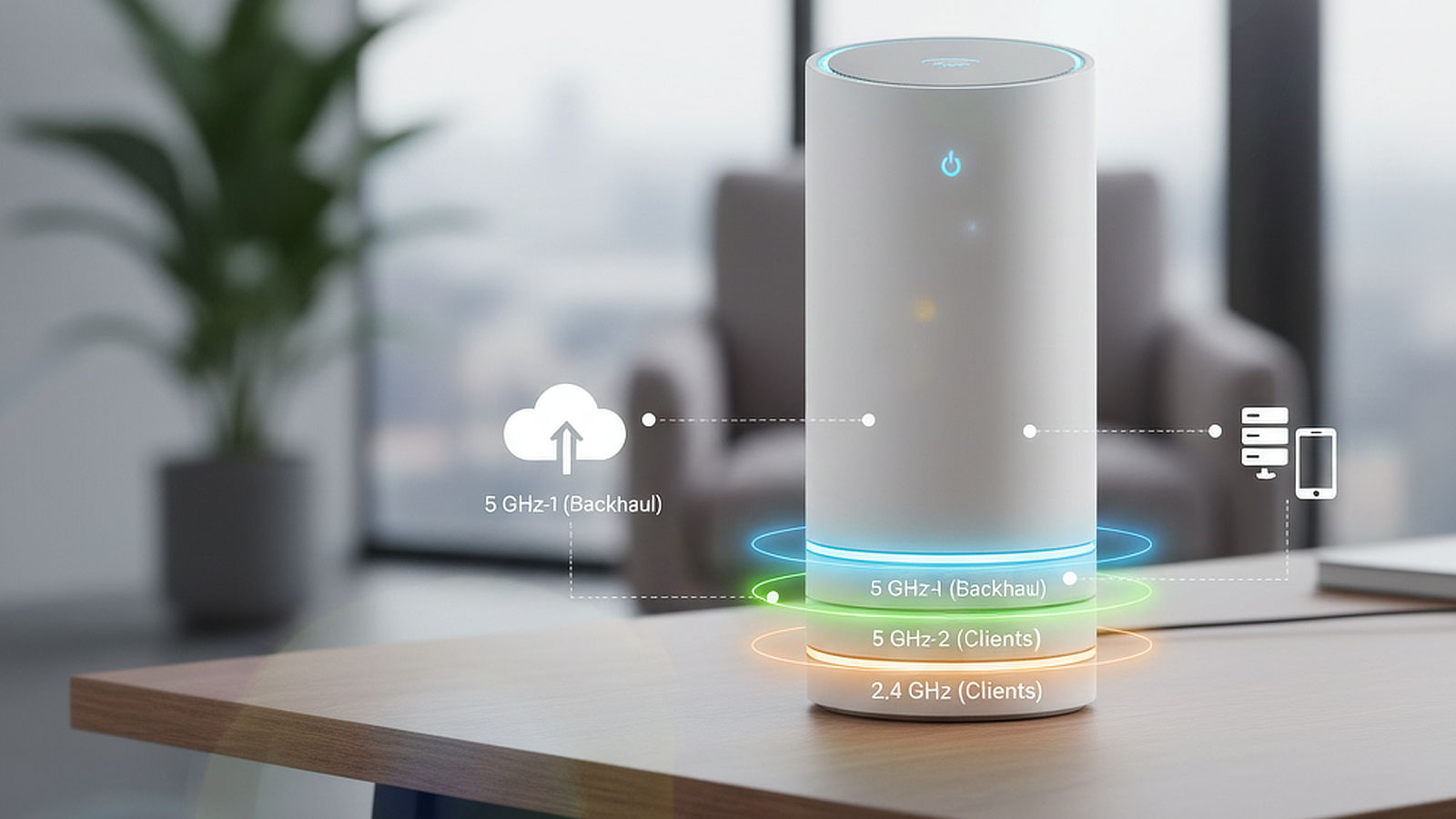 In configurazioni tri-band, il traffico viene ripartito tra più radio: un canale dedicato si occupa del backhaul, mentre gli altri servono i client. In questo modo si riduce la competizione per la banda e si migliora la velocità percepita di ciascun utente. La mesh sceglie quindi automaticamente il percorso che massimizza la capacità radio complessiva, ottimizzando throughput e latenza complessiva della rete.