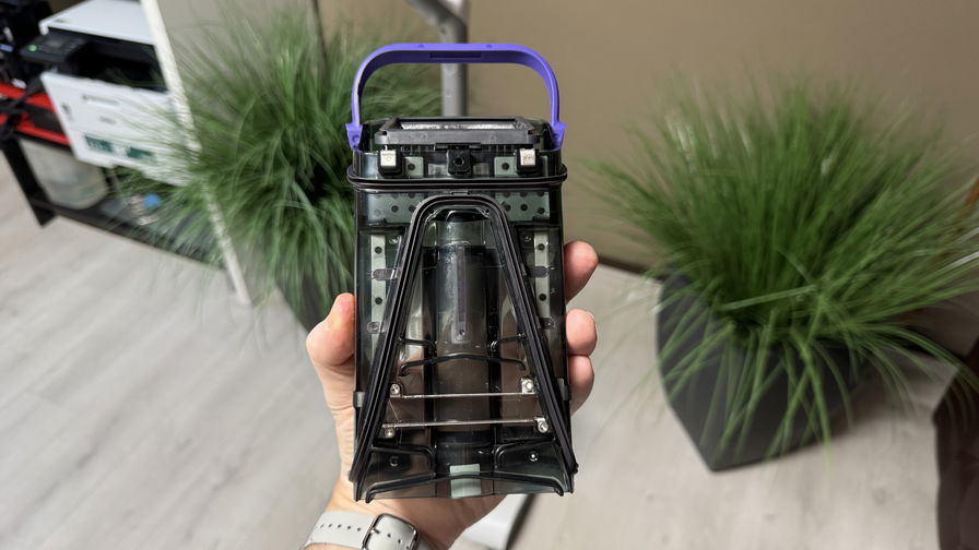 Il sistema di gestione dei liquidi prevede due serbatoi separati: uno per l'acqua pulita con capacità di 0,79 litri, e uno per l'acqua sporca che può contenere fino a 0,67 litri. Questa configurazione permette di completare la pulizia di abitazioni di medie dimensioni senza necessità di rabbocchi o svuotamenti intermedi. Un elemento distintivo è la separazione dei rifiuti solidi da quelli liquidi all'interno del serbatoio di raccolta, che previene intasamenti e facilita lo smaltimento.
