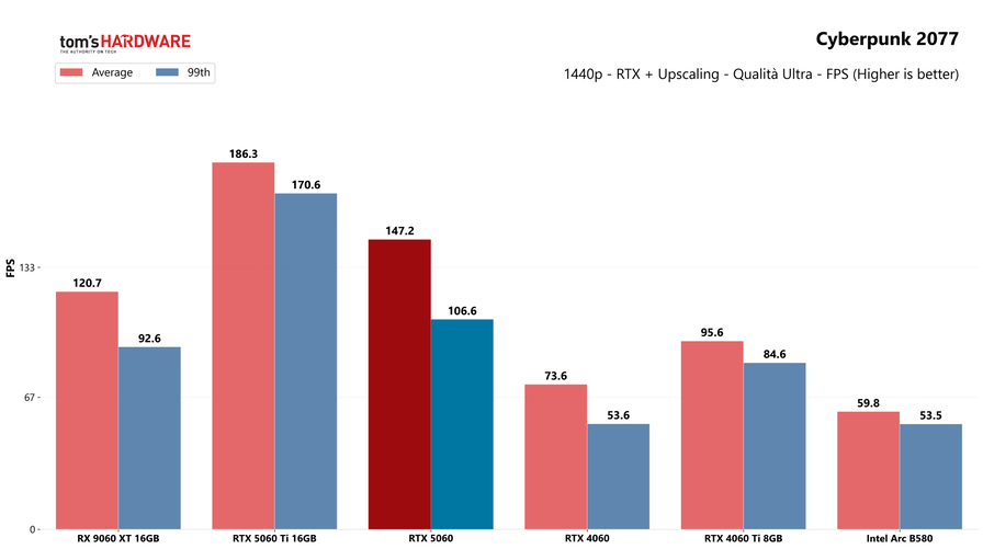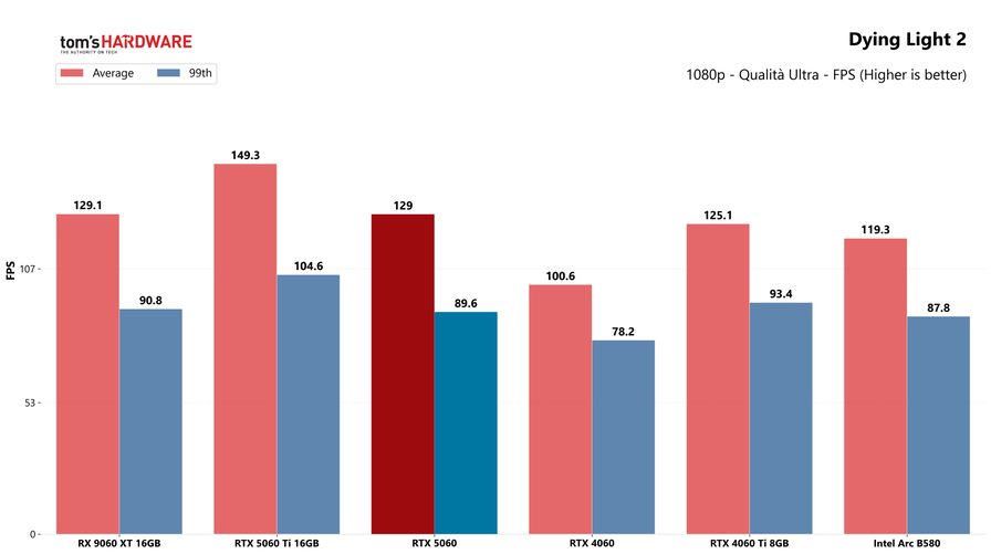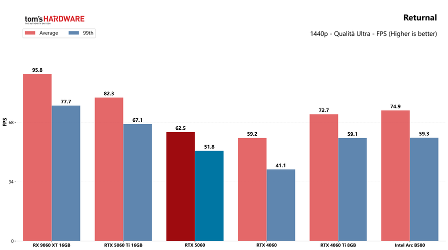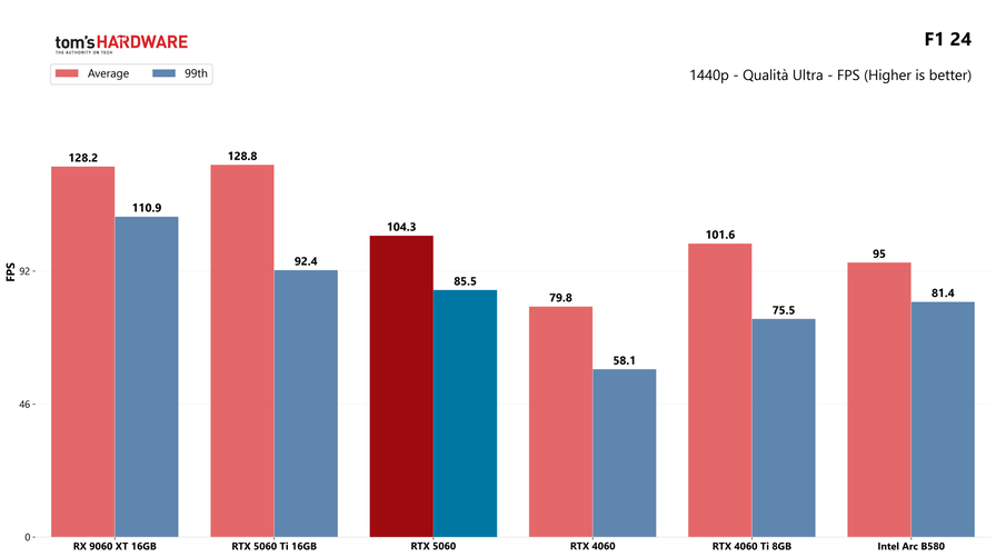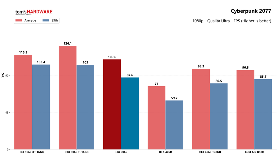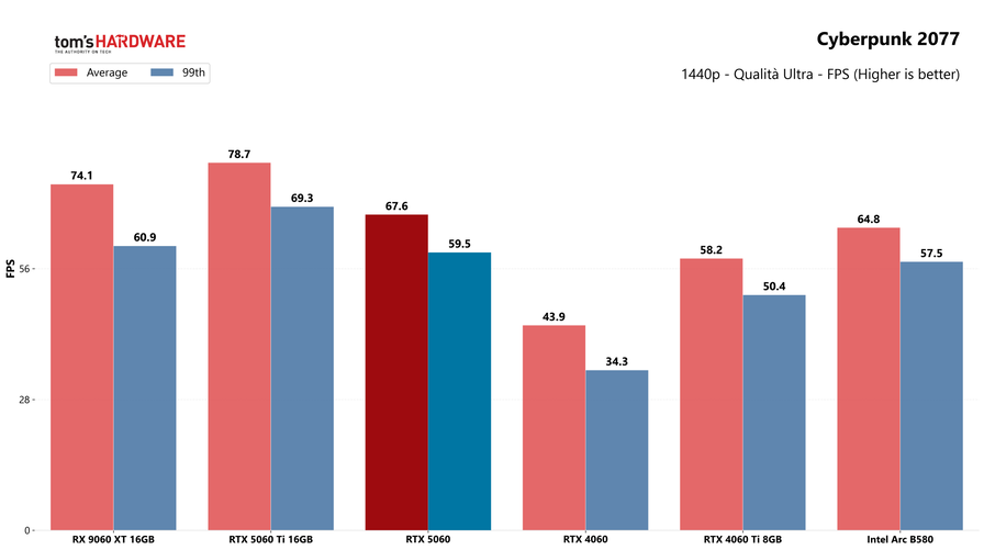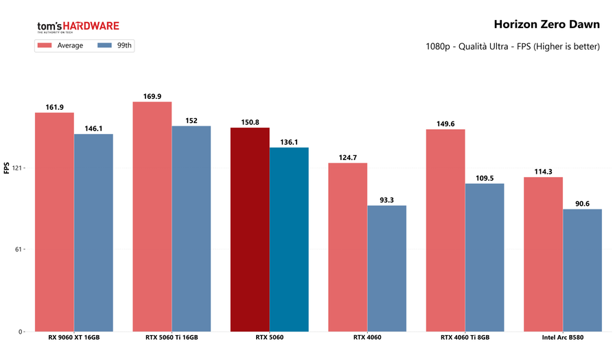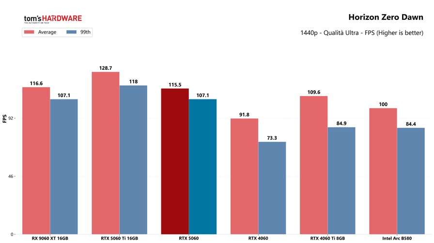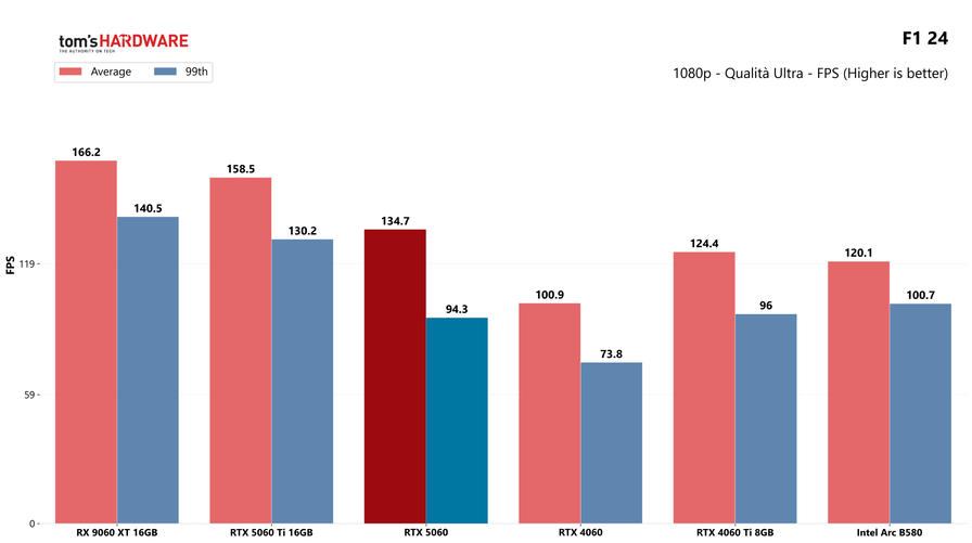 Partiamo dai giochi, con i test in rasterizzazione classica sia in 1080p che in 1440p: la RTX 5060 potrebbe sorprendere a questa risoluzione, quindi abbiamo deciso di testarla.