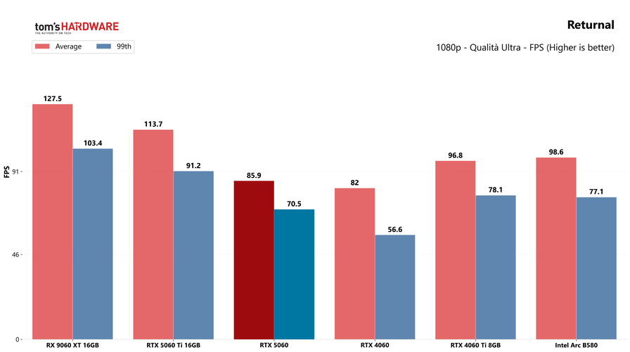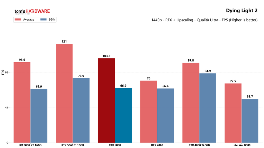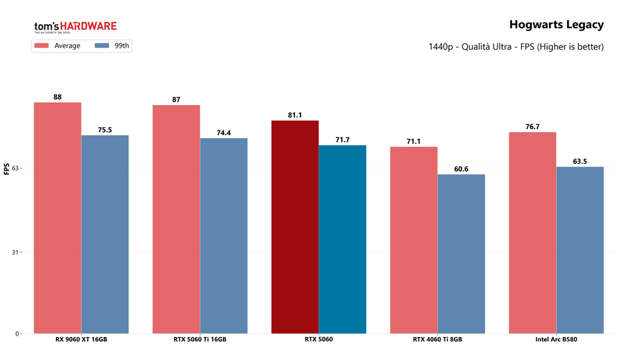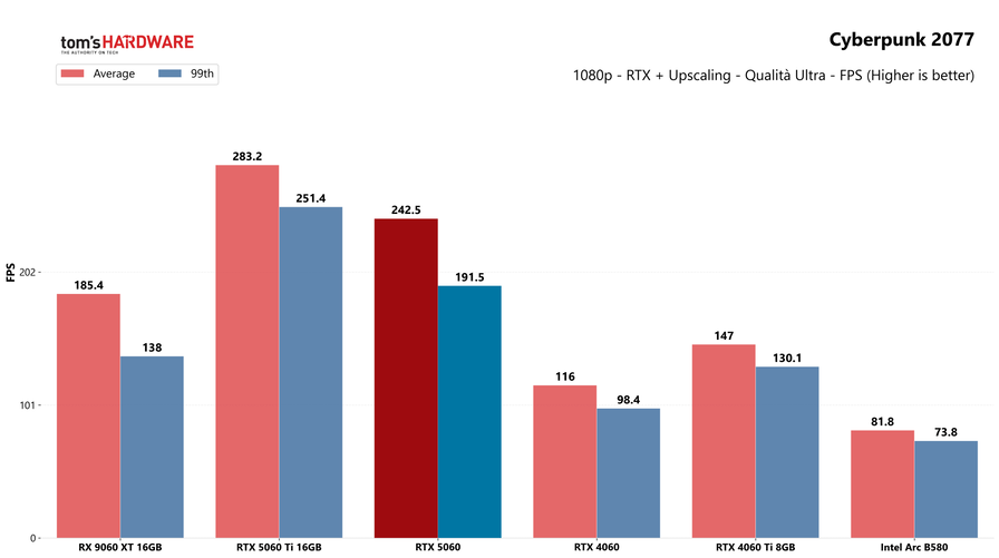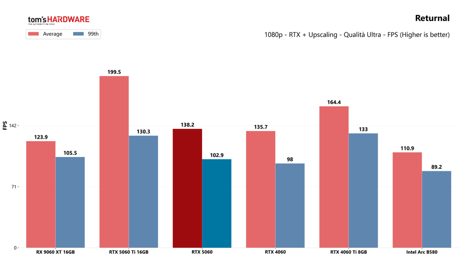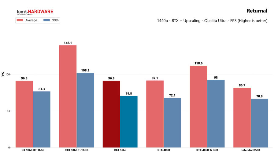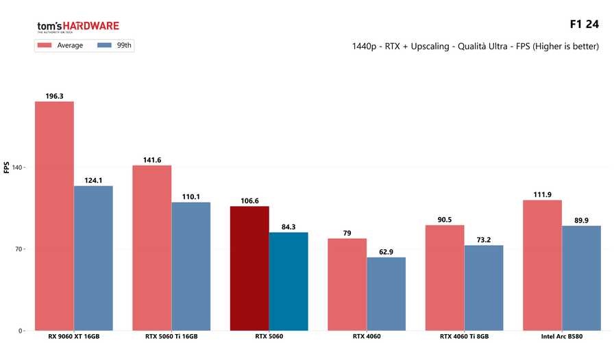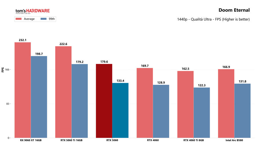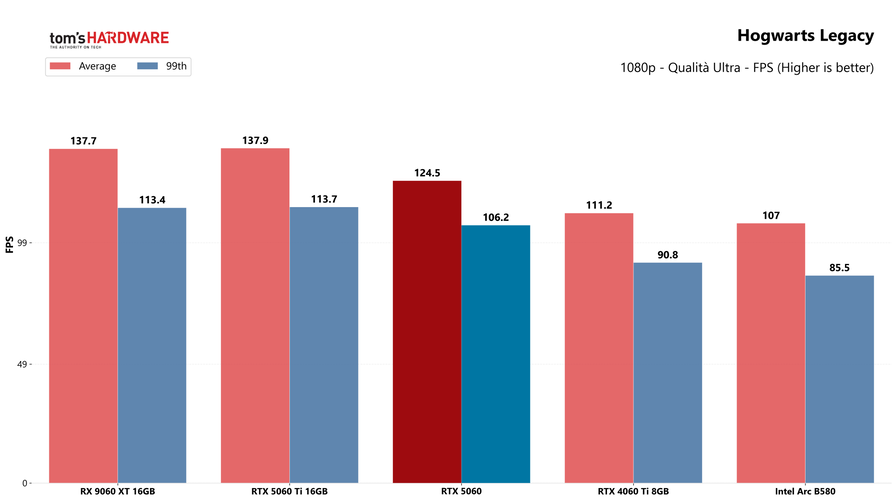 Partiamo dai giochi, con i test in rasterizzazione classica sia in 1080p che in 1440p: la RTX 5060 potrebbe sorprendere a questa risoluzione, quindi abbiamo deciso di testarla.