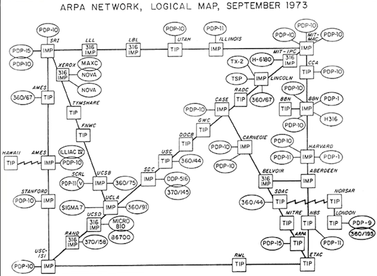 ARPANET iniziò collegando quattro università americane, ma la reale innovazione fu di natura tecnica: l'introduzione del packet switching, ovvero la trasmissione di dati suddivisi in pacchetti indipendenti che potevano viaggiare lungo percorsi diversi per poi essere ricomposti a destinazione. Fino ad allora si utilizzavano linee dedicate e continue, analoghe ai collegamenti telefonici, ma il packet switching garantiva una maggiore affidabilità e uno sfruttamento più efficiente delle risorse disponibili.