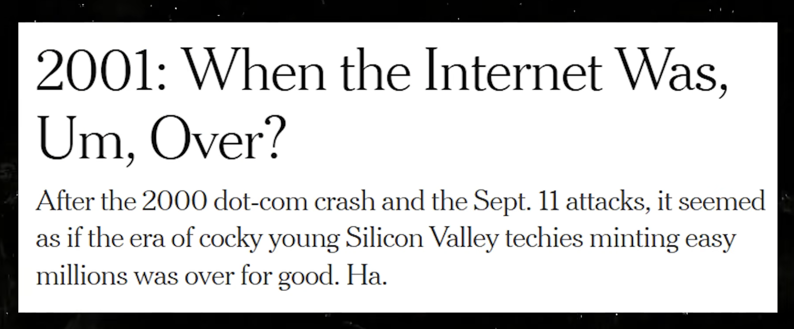 Lo scoppio della bolla delle dot-com fu dunque un paradosso: da un lato confermò l'idea che Internet fosse stata sopravvalutata, dall'altro segnò l'inizio della selezione naturale che avrebbe lasciato spazio ai veri protagonisti della rivoluzione digitale.