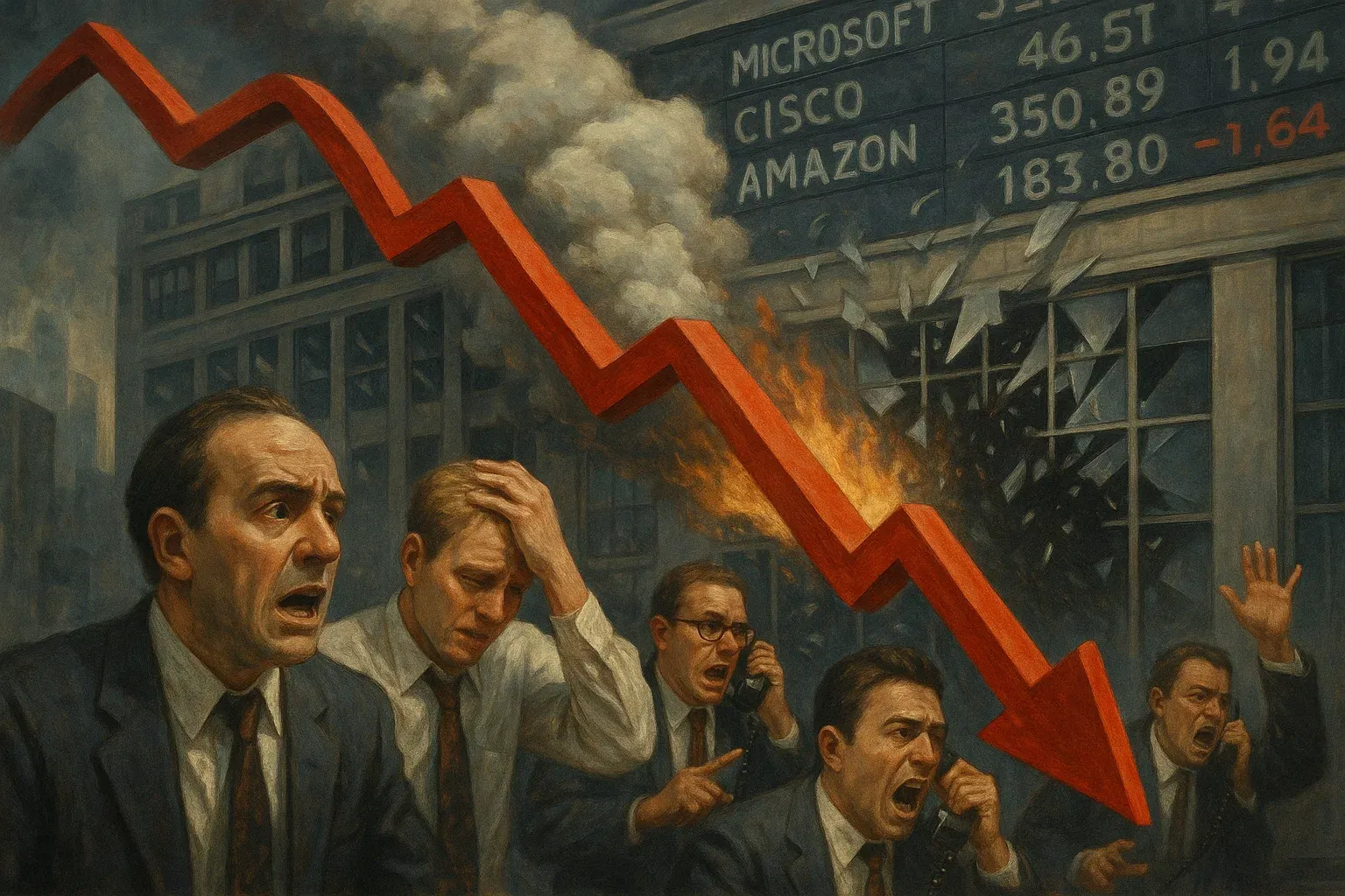 Il 10 marzo 2000 il Nasdaq toccò il massimo storico di 5132 punti. Pochi giorni dopo ebbe inizio una discesa che si trasformò in una vera valanga: nell'arco di due anni l'indice perse quasi l'80% del suo valore. Fu un disastro.