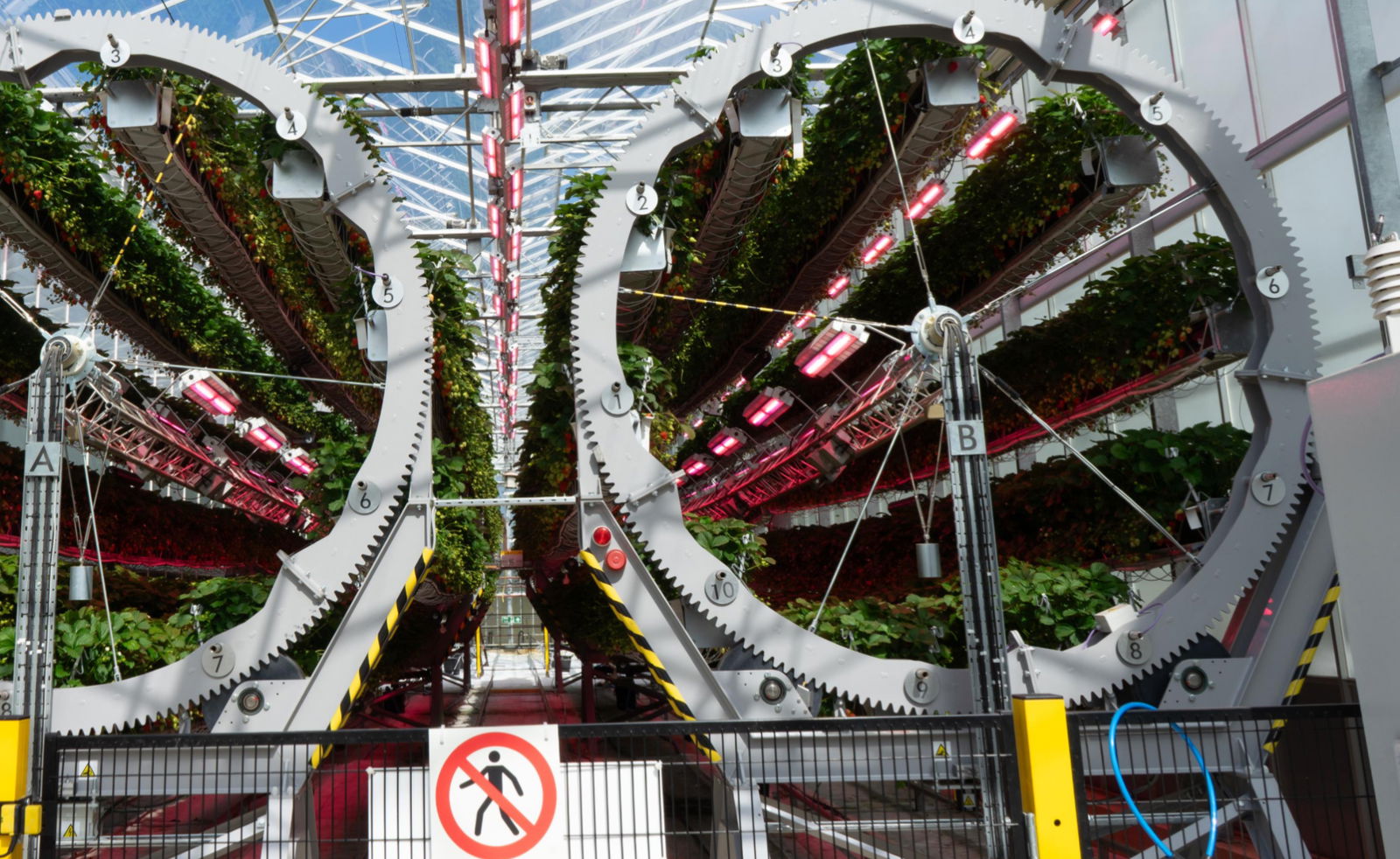 Al centro di questa trasformazione si trova un sistema di coltivazione verticale ibrido che sfida le convenzioni agricole attraverso strutture rotanti monumentali. Due impalcature in alluminio, ciascuna delle dimensioni di due autobus a due piani collegati, ruotano continuamente per garantire alle piante di fragola un'esposizione ottimale alla luce naturale. Quando i livelli di luminosità diurna diminuiscono durante i mesi invernali, un sistema di illuminazione LED supplementare interviene automaticamente per mantenere le condizioni di crescita ideali.