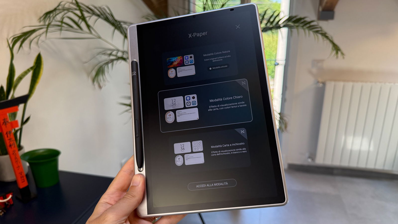 Questa però non è l'unica caratteristica interessante dello schermo, anzi: nel tablet troviamo anche l'innovativa tecnologia X-Paper, con tre modalità di visualizzazione distinte: