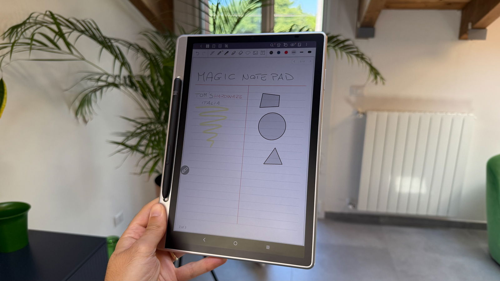 Ovviamente un prodotto di questo tipo non poteva non essere provvisto di uno stilo per scrivere a mano. In confezione troviamo la X3 Pro Pencil 2, penna che offre offre 16.384 livelli di pressione con una forza di attivazione di soli 3 grammi. Significa che ogni tratto, dalla più delicata annotazione a margine al più deciso sottolineato, viene catturato con assoluta precisione.