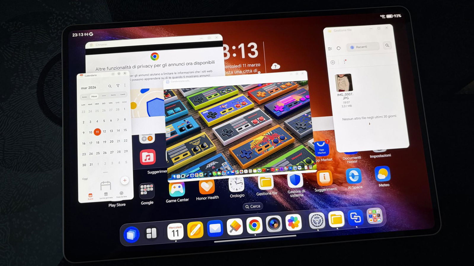 Nel momento in cui ho aperto la prima applicazione, però, ho capito cosa intende Honor quando parla di esperienza PC. La modalità desktop non è un semplice launcher adattato e non è nemmeno una versione ibrida fra OS mobile e desktop come iPadOS.