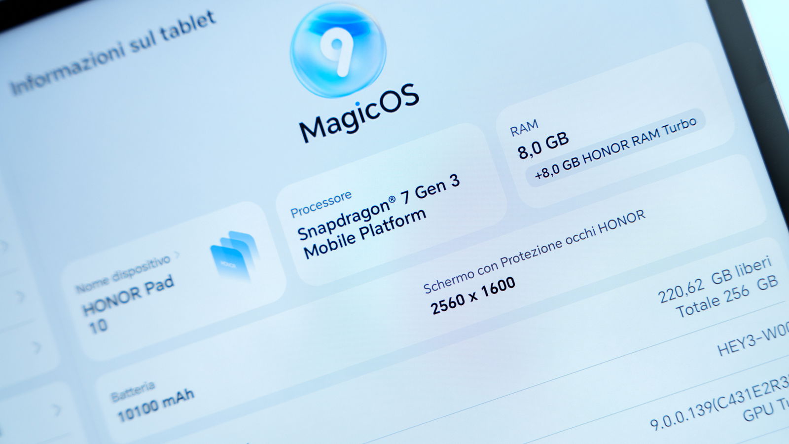Per quanto riguarda gli aggiornamenti, Honor promette due major update di Android e quattro anni di patch di sicurezza, un impegno solido per un tablet di questa fascia, che garantisce sufficiente longevità e sicurezza nel tempo.