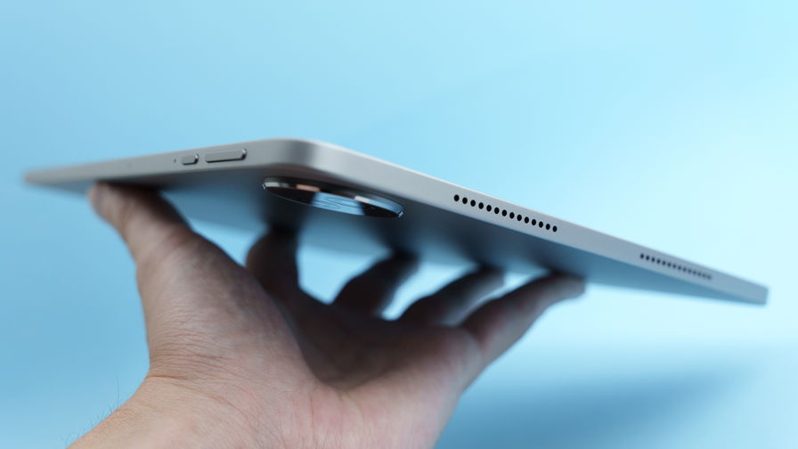 Un cambiamento significativo rispetto al modello precedente è il riposizionamento del modulo fotografico posteriore. Abbandonata la posizione centrale, la fotocamera posteriore è ora alloggiata in un elegante anello circolare nell'angolo in alto a sinistra. Lungo il frame metallico, i pulsanti fisici per l'accensione e la regolazione del volume sono solidi e offrono un feedback tattile preciso e soddisfacente. La collocazione sul lato lungo superiore non è tra le mie preferite, trovo più facile raggiungere il tasto di sblocco quando è sul lato corto se si utilizza il tablet in orizzontale, ma non è una cosa a cui non ci si riesce ad abituare.