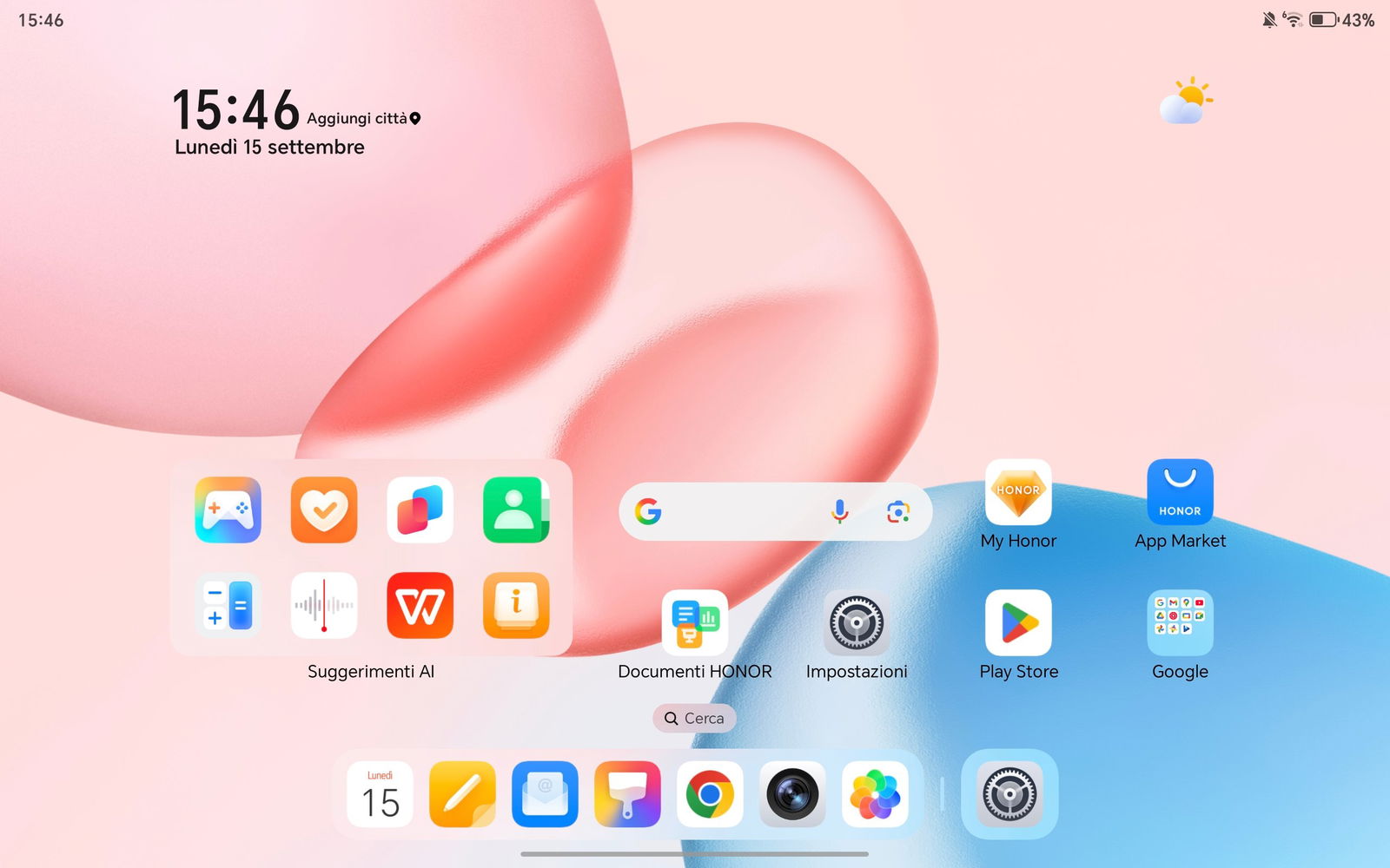 Honor Pad 10 arriva con a bordo Android 15, personalizzato con l'interfaccia proprietaria MagicOS 9.0. Questa combinazione offre un'esperienza software matura, fluida e ricca di funzionalità pensate per sfruttare l'ampio display del tablet. L'interfaccia è pulita, intuitiva e ben ottimizzata, con una particolare attenzione alle funzionalità di multitasking.