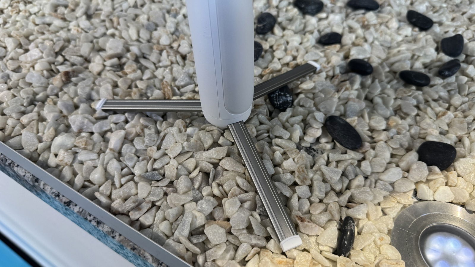Il selfie stick integrato si estende fino a 210 millimetri e termina con un'articolazione che consente di piegarsi fino a 90 gradi. Nel vano impugnatura si trovano tre gambe metalliche che si estraggono singolarmente per formare un treppiede stabile. Sia il selfie stick che le gambe del tripode sono costruiti in acciaio inossidabile, conferendo rigidità strutturale durante le riprese stazionarie. Il meccanismo di estrazione è fluido e non presenta giochi evidenti anche dopo settimane di utilizzo intensivo.