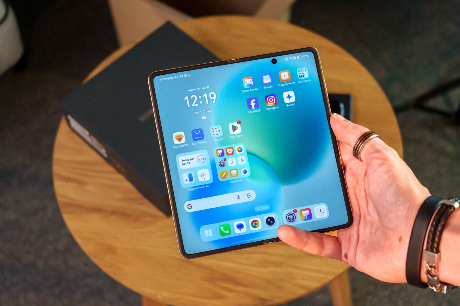 Questo significa che l'apertura del dispositivo diventa un gesto intenzionale, dettato dalla volontà di ottenere di più: più spazio, più immersione, più multitasking. Questa scelta operativa non solo rende l'esperienza d'uso più deliberata, ma può anche contribuire a una maggiore longevità del meccanismo di piegatura, dato che la cerniera viene azionata meno frequentemente rispetto, ad esempio, a un pieghevole a conchiglia che deve essere aperto per ogni interazione principale.