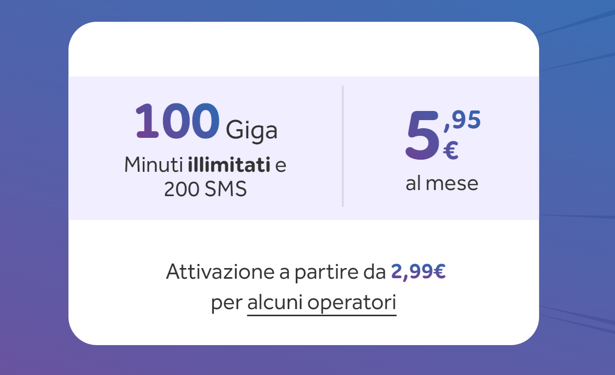 Se stavate aspettando il momento giusto per cambiare piano telefonico o per avere più dati senza spendere una fortuna, Ho Mobile arriva in vostro soccorso con un’offerta davvero imperdibile. Per un periodo limitato, potrete attivare un piano da 100GB a soli 5,95€ al mese, con un costo di attivazione variabile a seconda del vostro operatore: 2,99€ per alcuni e 29,99€ per altri. Un’occasione da non lasciarsi scappare se desiderate navigare senza pensieri e restare sempre connessi.