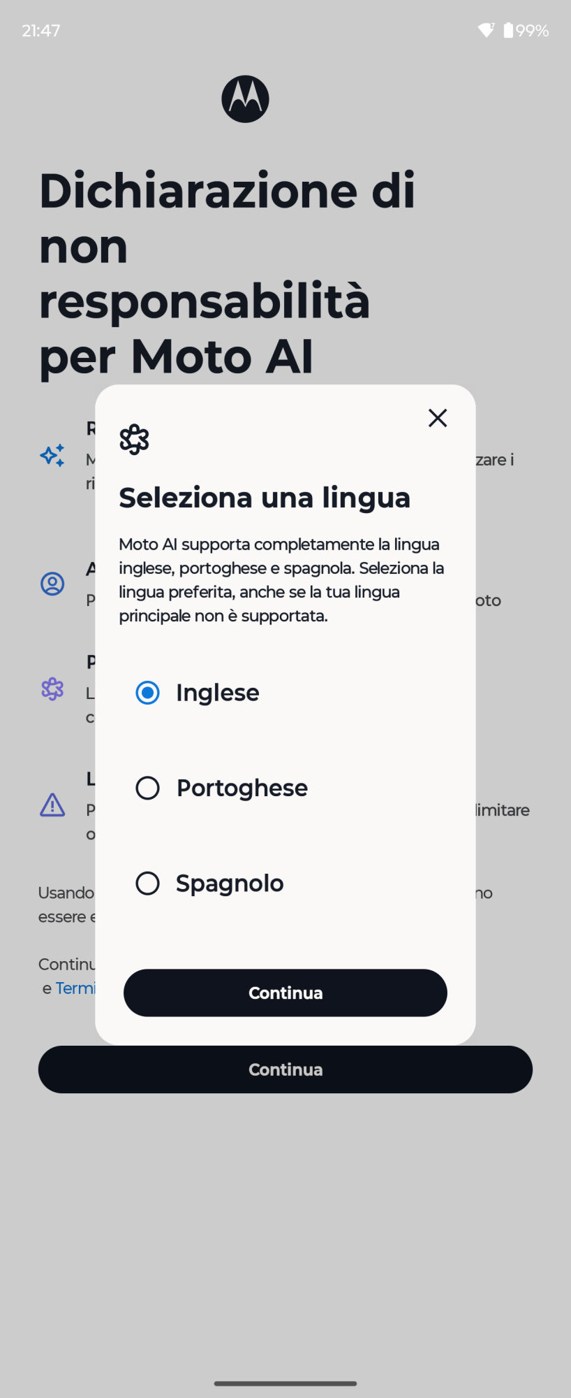 E tutto questo sarebbe bellissimo, un sistema che unisce tutte le migliori IA per ottenere il risultato più utile per la richiesta. Il problema è che moto ai, per ora, supporta solo inglese, spagnolo e portoghese: in italiano restituisce errori o solamente risposte scritte, spesso con grammatica imprecisa. Un'occasione persa. Ovviamente l'arrivo della lingua italiana è previsto, ma non dovreste mai acquistare uno smartphone, soprattutto da oltre 1000 euro, in base a una promessa di una funzione futura.