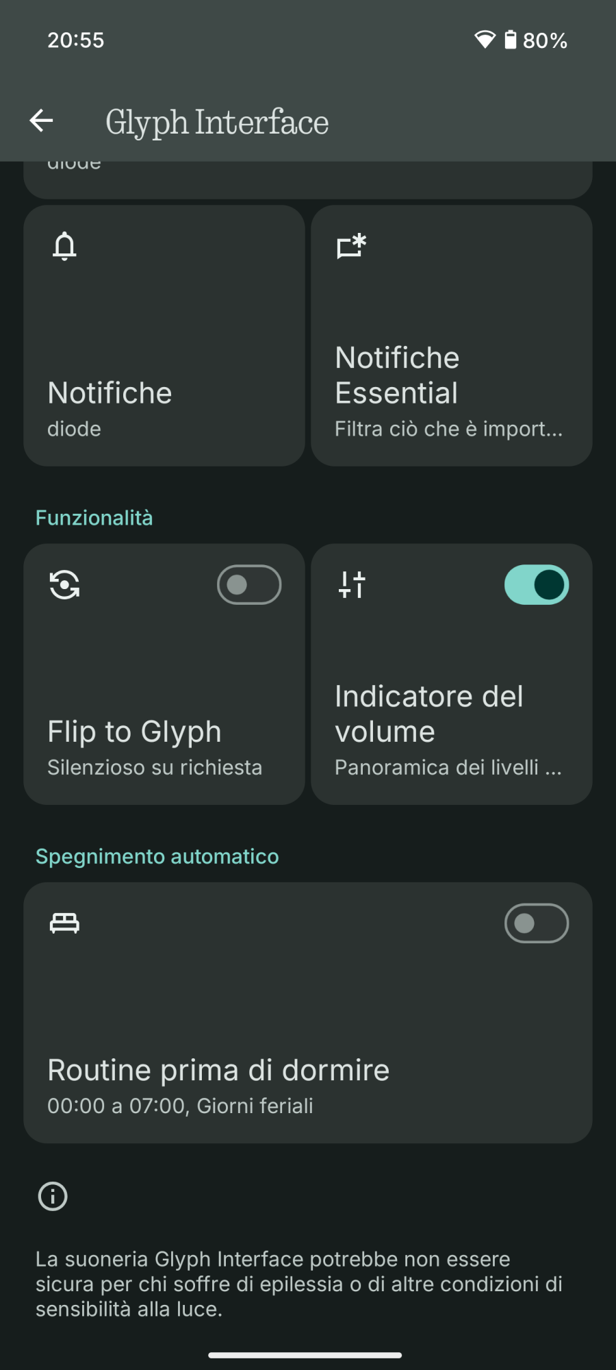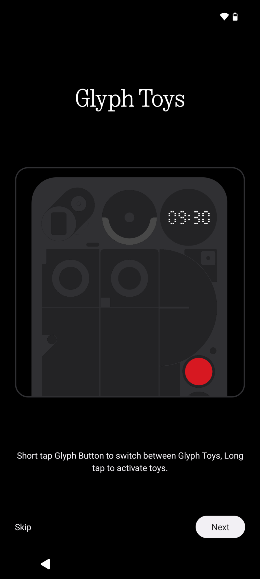 L'interazione avviene tramite un "Glyph Button" dedicato sul retro, una superficie sensibile alla pressione sotto il vetro che, con una singola pressione, permette di scorrere tra i vari "Glyph Toys" e, con una pressione prolungata, di attivarle. Nothing ha promesso l'introduzione di ulteriori pannelli in futuro e ha reso disponibili i file pertinenti agli sviluppatori, aprendo la strada a opzioni di terze parti. Sebbene visivamente interessante, la sua utilità quotidiana rimane questionabile, dato il poco tempo che si trascorre a guardare il retro di uno smartphone.