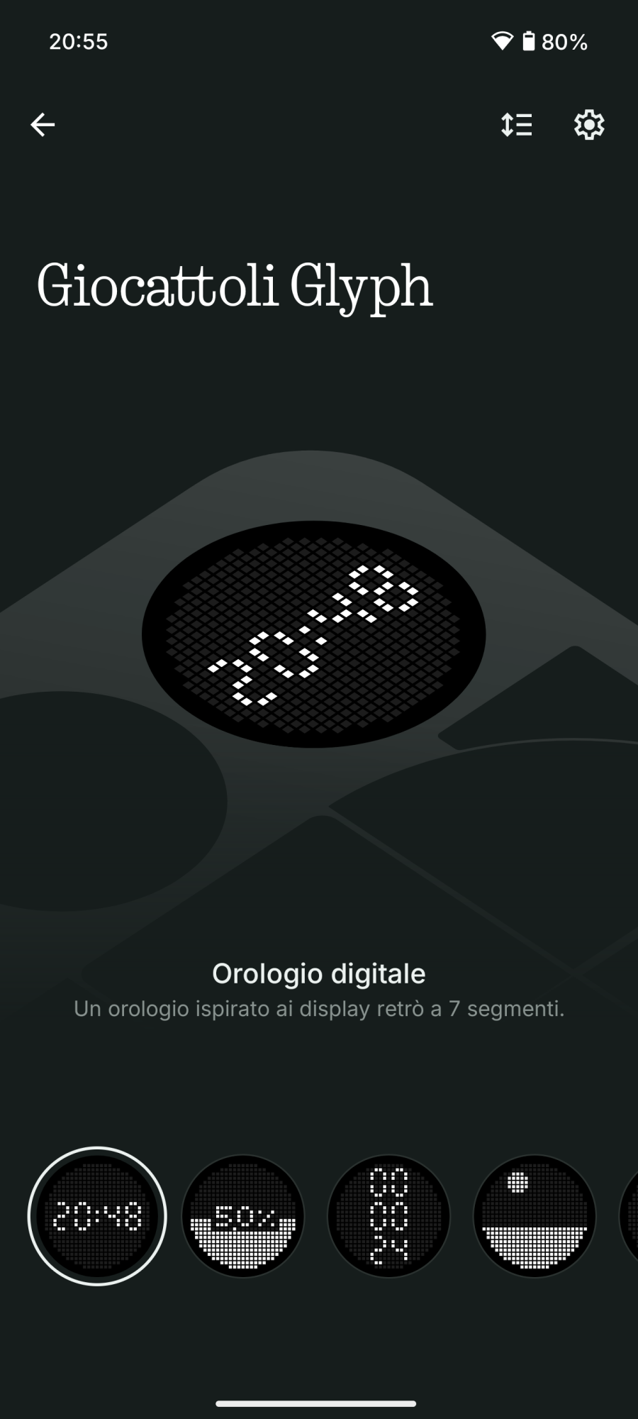 Questo piccolo display LED tondo e monocromatico, posizionato nell'angolo superiore destro del retro del dispositivo, racchiude un potenziale significativo, andando oltre la semplice segnalazione luminosa. Sebbene al lancio le sue funzionalità siano incredibilmente limitate, offre già strumenti come un orologio digitale, un cronometro e un indicatore di batteria.