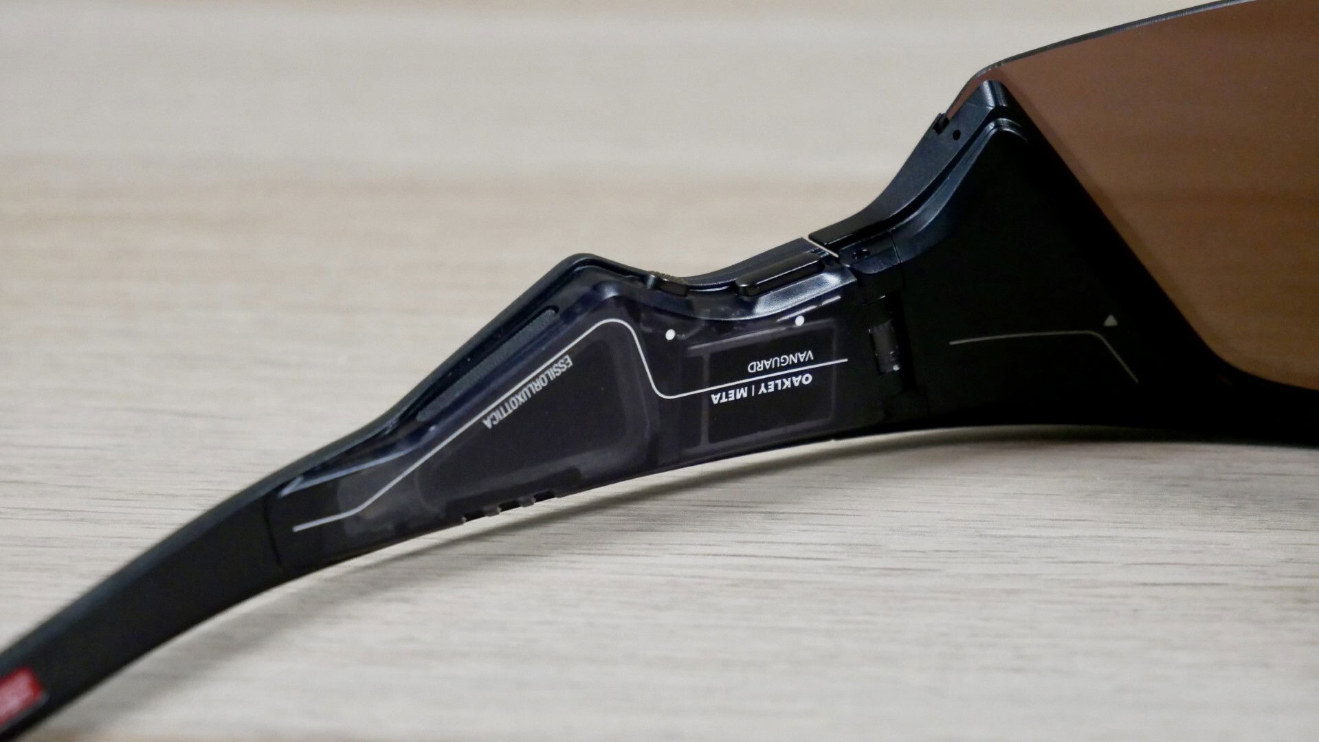La forma avvolgente della montatura segue la curvatura del viso, offrendo una protezione laterale superiore rispetto ai modelli standard. Le aste sono leggermente più spesse rispetto agli occhiali Oakley tradizionali per ospitare i componenti elettronici, ma mantengono un profilo ragionevolmente sottile con uno spessore di circa 9,5 mm. Il peso complessivo di 66 grammi, pur superiore ai circa 30 grammi degli Oakley sportivi non smart, risulta ben distribuito e non crea eccessivo affaticamento anche dopo ore di utilizzo.