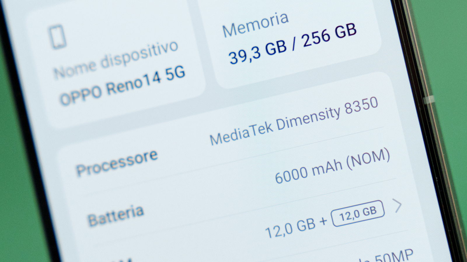 Il cuore pulsante dell'Oppo Reno14 5G è il chipset MediaTek Dimensity 8350, la stessa soluzione a 4 nanometri che abbiamo da poco visto su Oppo Reno13 Pro e Reno13. Sebbene non sia il processore più potente in assoluto disponibile oggi, la scelta di Oppo si rivela strategica e incredibilmente azzeccata per la filosofia di questo dispositivo.