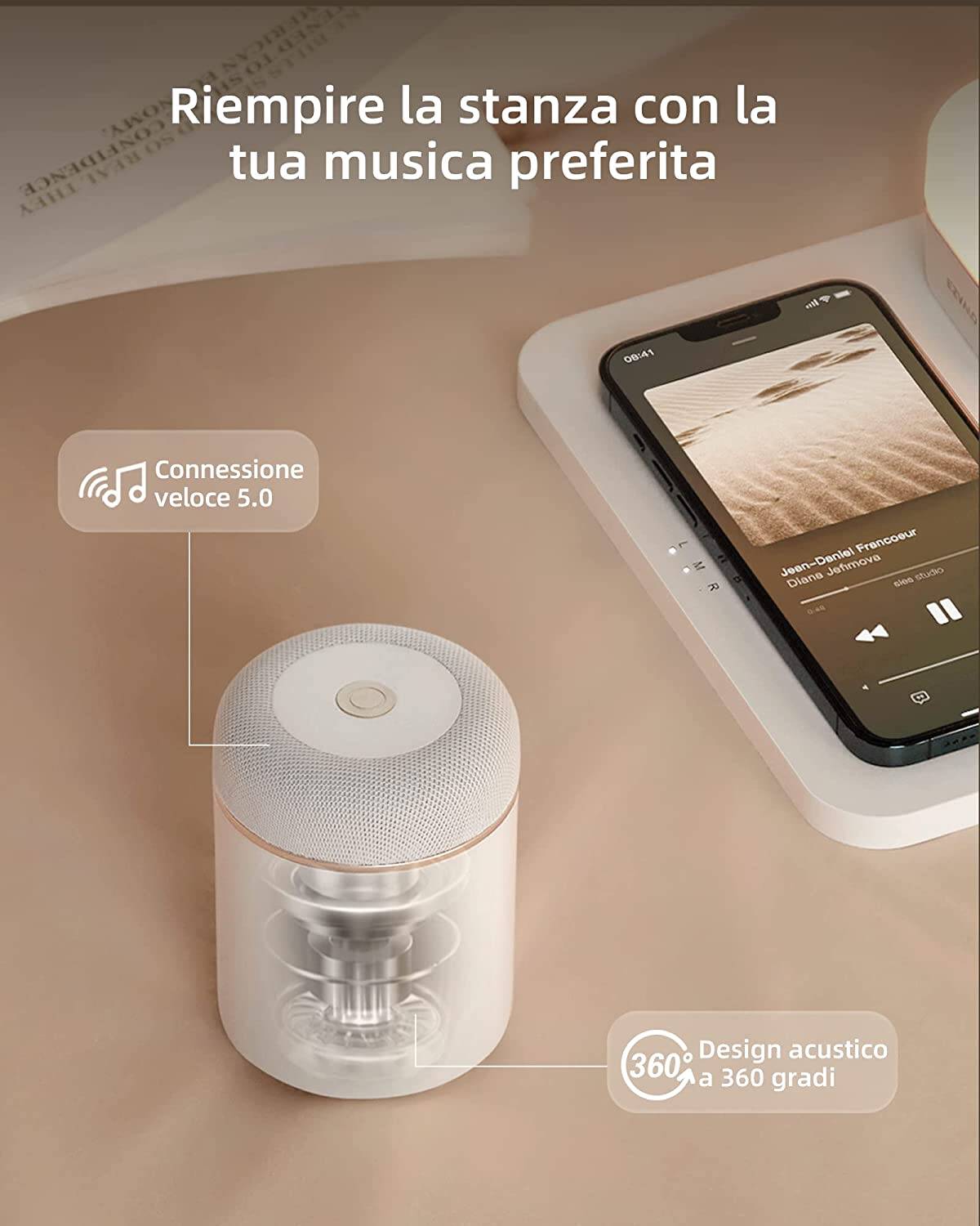 Ma a cosa è dovuta la popolarità di questo prodotto? Anzitutto al suo design, che unisce in un un'unico dispositivo (per altro modulare!) 3 prodotti in uno: un caricabatterie wireless, un altoparlante portatile e una luce notturna! Con il primo che fa da base al prodotto, e gli altir due dispositivi che possono essere letteralmente staccati dalla piattaforma (che per altro li tiene in carica e pronti all'uso!) per poter essere poi usati autonomamente!