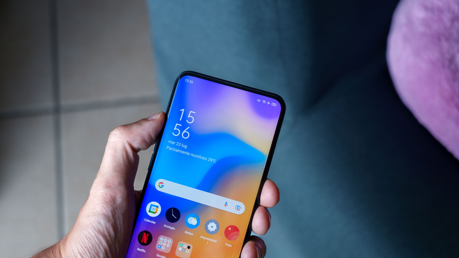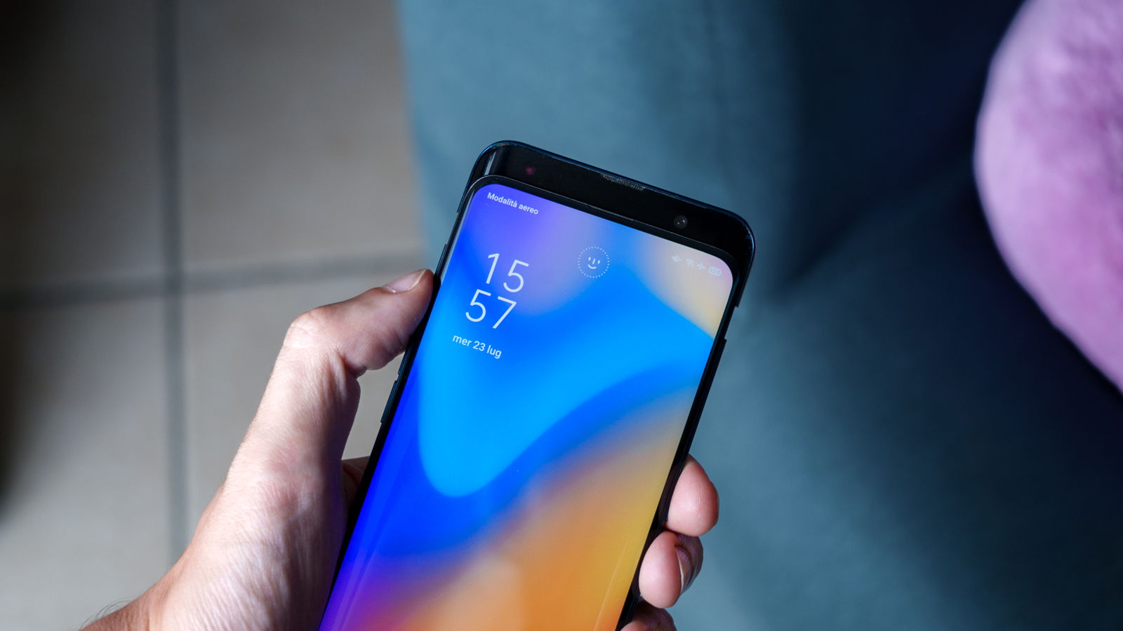 Le sue dimensioni, 156,7×74,2×9,6 mm, lo renderebbero oggi quasi compatto rispetto ai giganti attuali. La sua scocca, un sandwich di vetro Gorilla Glass 5 e alluminio, presentava una doppia curvatura, sia sul fronte che sul retro, che lo rendeva incredibilmente comodo da impugnare, quasi come un sasso levigato. Ma la vera magia era il suo display AMOLED da 6,42 pollici: una tela completamente ininterrotta. Nessun notch, nessun foro. Solo un pannello che copriva un impressionante 93,8% della superficie frontale, con cornici così sottili da essere quasi inesistenti per l'epoca.