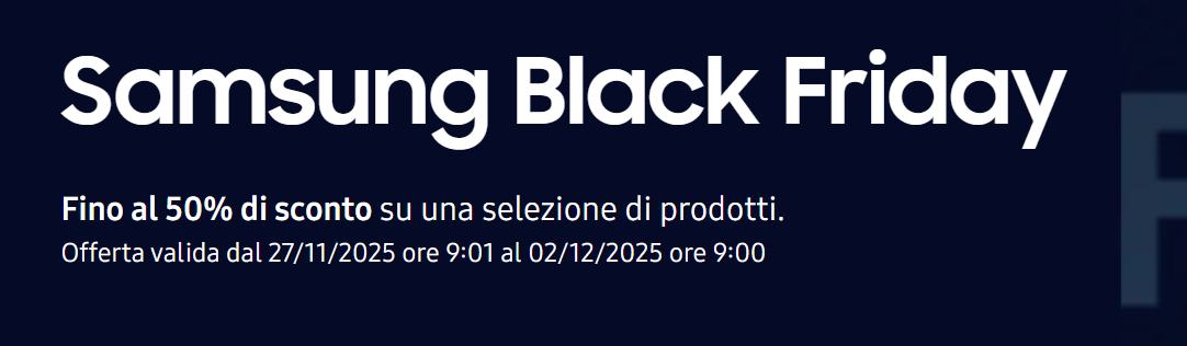Il Black Friday continua a sorprendere, e Samsung non fa eccezione. Se pensavate che le offerte migliori fossero ormai passate, vi sbagliate: grazie al nuovo coupon dedicato, il risparmio può spingersi ancora oltre. Utilizzando il codice BFWEEK, infatti, avete la possibilità di ottenere fino al 15% di sconto extra su una selezione di prodotti Samsung, ampliando in modo significativo le già ricchissime promozioni del periodo.