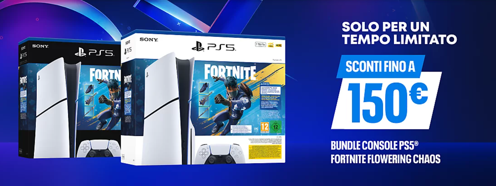 Per chi ama Fortnite, PlayStation propone bundle esclusivi: la PS5 Digital Edition (825GB) con il “Fortnite Flowering Chaos Bundle” è disponibile a 349,99€, mentre la PS5 standard (1TB) con lo stesso bundle è in offerta a 449,99€. Non mancano inoltre sconti sugli accessori: il visore PS VR2 è scontato di 100€, PlayStation Portal di 20€, ideale ora che lo streaming in cloud è disponibile, e diverse opzioni audio e controller con sconti fino a 30€. È l’occasione perfetta per completare la propria postazione di gioco con strumenti di alta qualità a prezzi vantaggiosi.