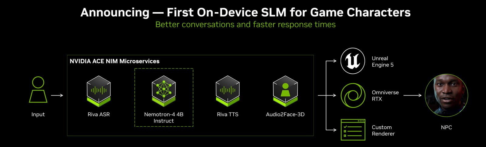 Nonostante tutto questo, però, sarebbe sbagliato - e irrealistico, vista l'epoca in cui ci troviamo - concludere che l’intelligenza artificiale non abbia alcun ruolo nel futuro dei videogiochi. Esiste un approccio molto più maturo e promettente, che vede l’IA come uno strumento al servizio degli sviluppatori e non come una sostituzione indiscriminata dei contenuti scritti. Il progetto più citato in questo senso è NVIDIA ACE, una suite di tecnologie progettate per creare NPC reattivi ma rigorosamente controllati.