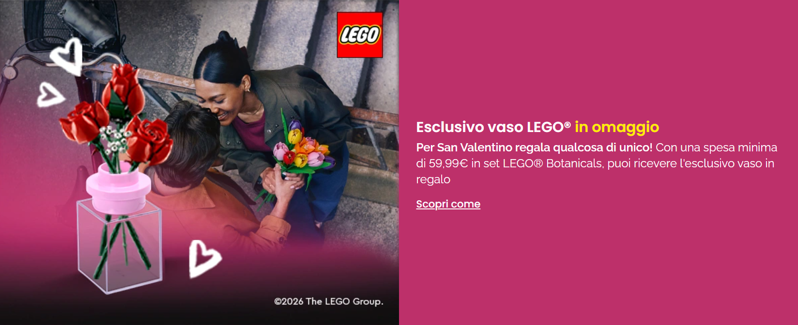 Questa promozione rappresenta un’idea regalo perfetta per San Valentino, capace di combinare bellezza e manualità. I set LEGO Botanicals, con le loro forme delicate e i colori vivaci, uniti al vaso rosa, permettono di creare un angolo fiorito unico, capace di sorprendere e far sorridere. Non importa se scegliete di regalarlo a qualcuno di speciale o se decidete di coccolarvi con un momento di relax e costruzione: LEGO trasforma ogni costruzione in un piccolo capolavoro, perfetto da mostrare o regalare.